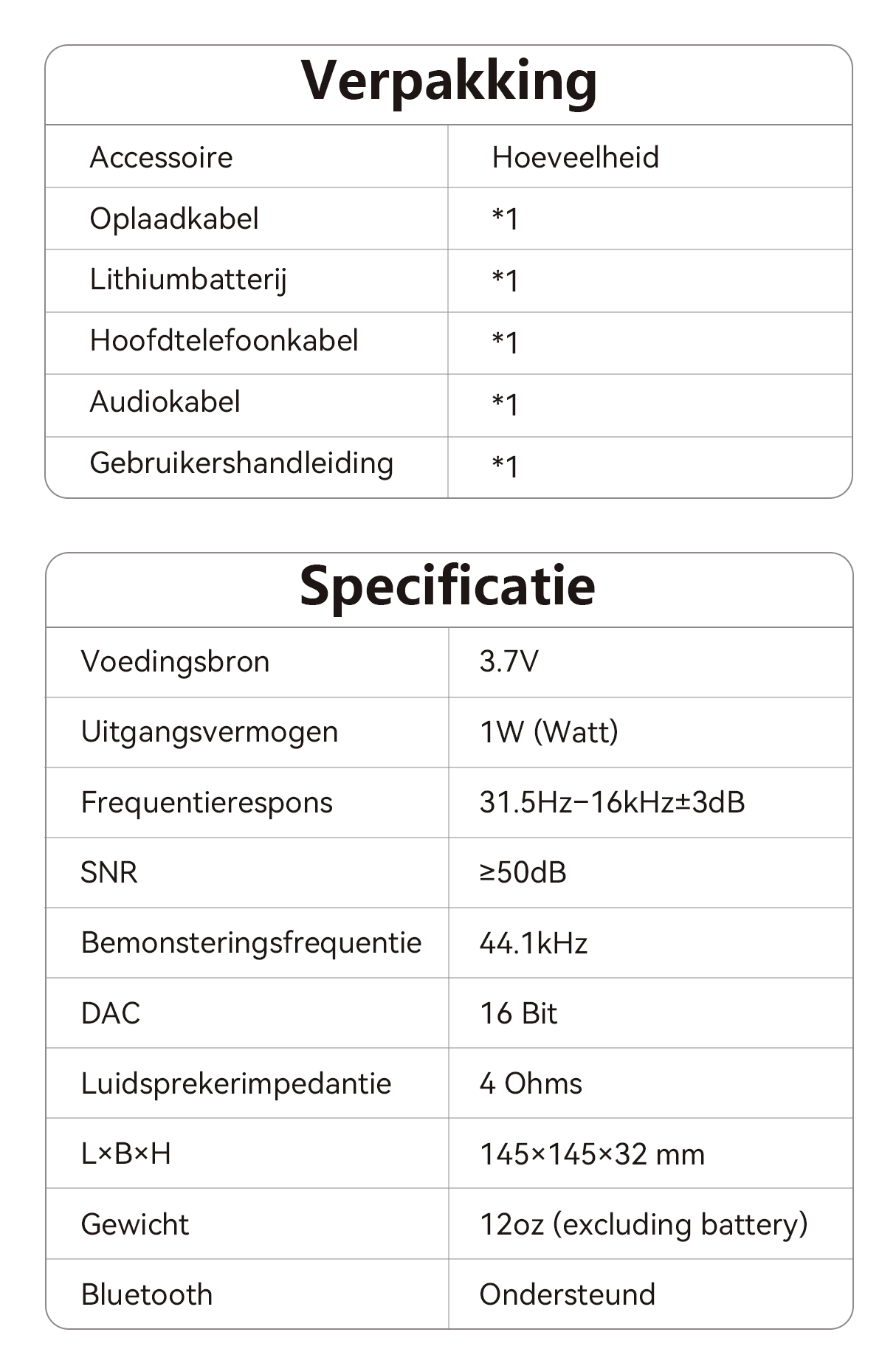 - Bluetooth Draadloze Verbinding – Koppel draadloos voor eenvoudig en vrij muziekplezier.