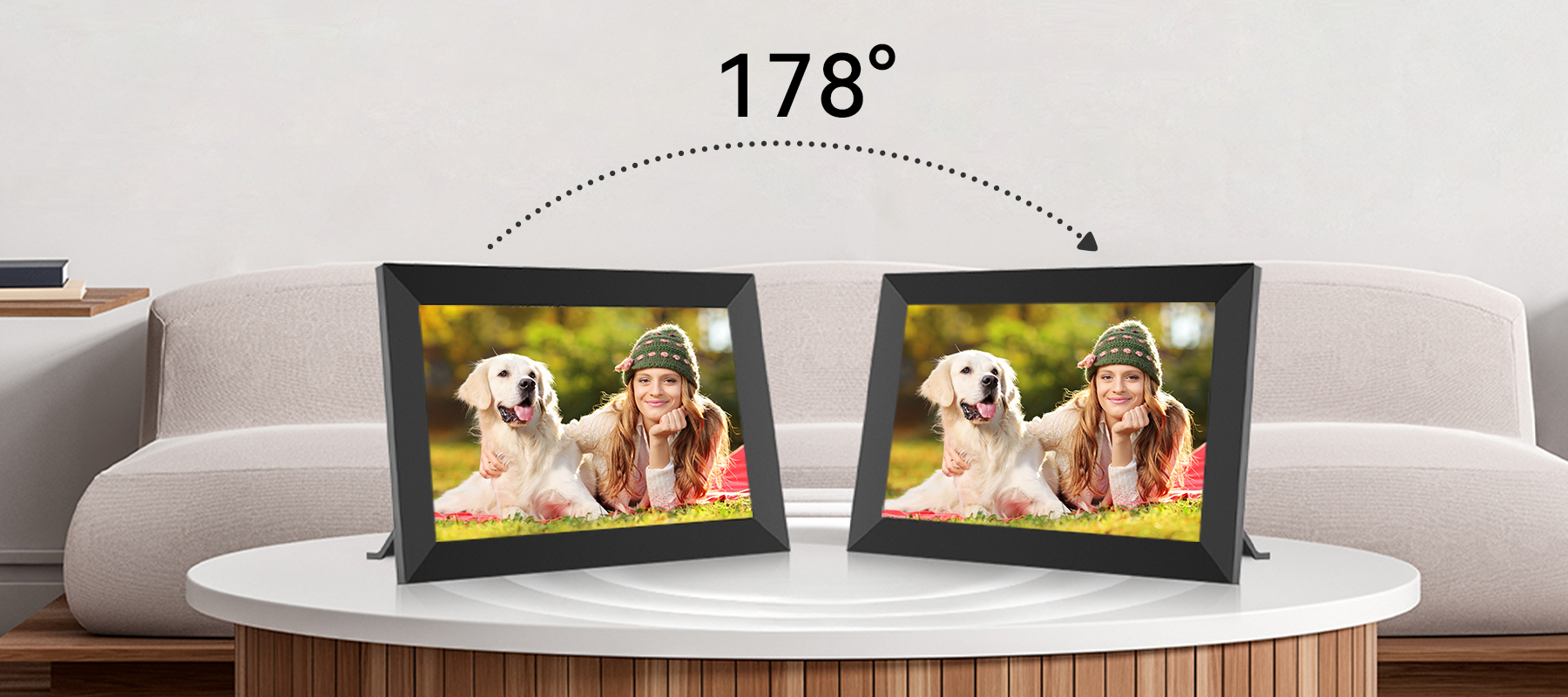 Met de ingebouwde gravitatiesensor past het automatisch de oriëntatie van het scherm aan, of je het nu horizontaal op een tafel plaatst of verticaal aan de muur hangt. Het toont elke foto vanuit de perfecte hoek zonder handmatige aanpassingen, voor snel en eenvoudig gebruik.