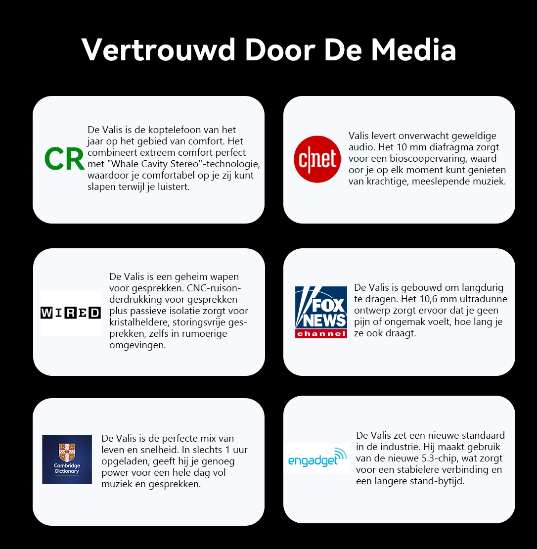 Dankzij de geüpgrade IPX5 waterdichte technologie, biedt Valis bescherming van professionele kwaliteit. Of het nu gaat om zware zweetproductie of een onverwachte regenbui, Valis houdt het vocht en de spatten tegen. Dit garandeert hoge duurzaamheid, waardoor je ze met vertrouwen kunt dragen in elke omgeving en ononderbroken kunt genieten van pure audio-ervaring.
